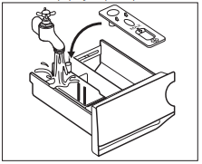 3. Ξεπλύνετε το συρτάρι απορρυπαντικού με τρεχούμενο χλιαρό νερό, για να απομακρύνετε τυχόν ίχνη συσσωρευμένου απορρυπαντικού. Αφού το καθαρίσετε, ξανατοποθετήστε το επάνω μέρος στη θέση του.