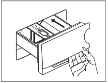 4. Εισαγάγετε το συρτάρι απορρυπαντικού στις ράγες οδηγούς και κλείστε το. Εκτελέστε το πρόγραμμα ξεβγάλματος χωρίς ρούχα μέσα στον κάδο.