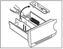 2. Αφαιρέστε το επάνω μέρος της θήκης προσθετικού πλύσης, για ευκολότερο καθάρισμα. Φροντίστε να αφαιρέσετε κάθε υπόλειμμα απορρυπαντικού από το επάνω και κάτω μέρος της υποδοχής. Χρησιμοποιήστε μια μικρή βούρτσα για να καθαρίσετε την υποδοχή.