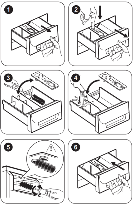 - Καθαρίστε το συρτάρι απορρυπαντικού σύμφωνα με τις οδηγίες του εγχειριδίου χρήστη και δοκιμάστε τη συσκευή ξανά.